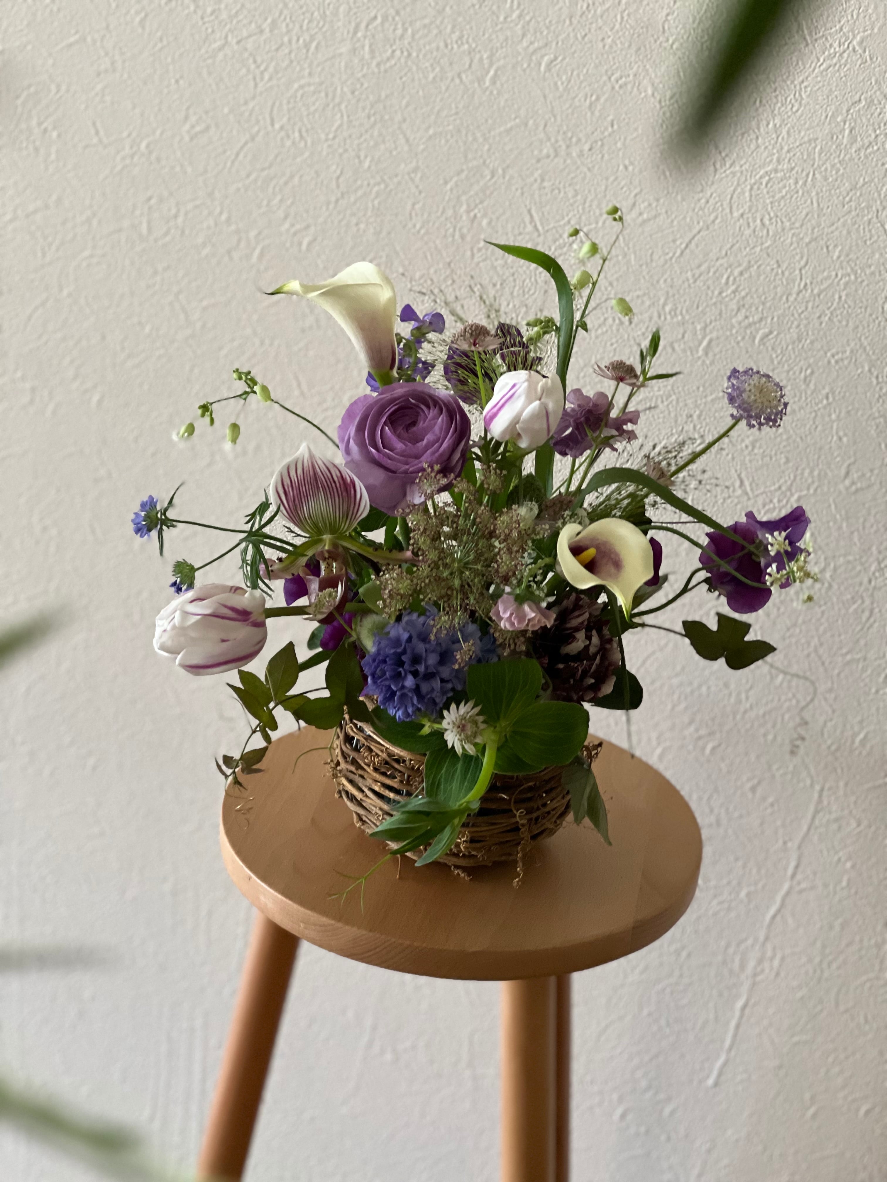 ※ 細かい花材の指定はお断りしていますが 「 淡い色味で 」「 濃い赤で 」などご希望がございましたら備考欄にてお知らせください。記載がない場合は「 完全おまかせ 」となります。